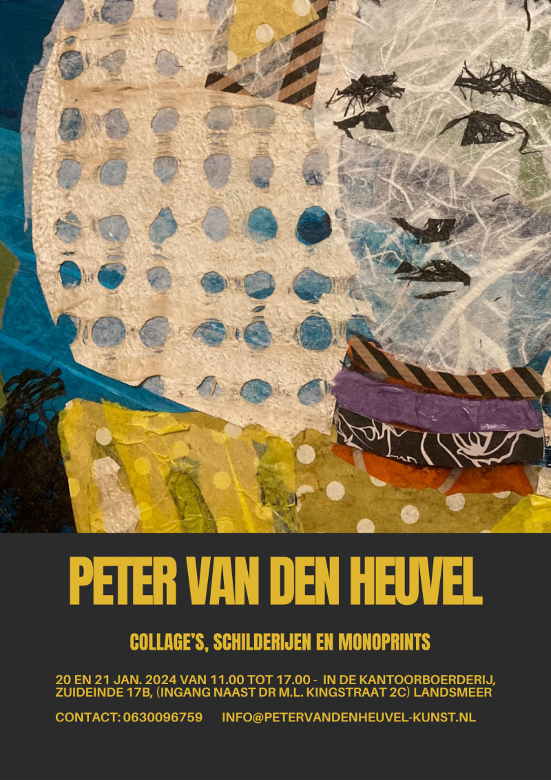 20 en 21 januari 2024 heb ik een expositie in de kantoorboerderij in Landsmeer (zie bovenstaande flyer). Je bent van harte uitgenodigd om een kijkje te komen nemen.