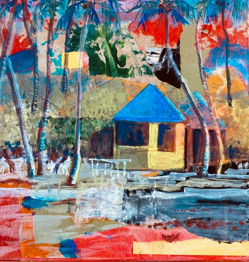 4 werken gemaakt na een reis naar Martinique. gemengde techniek op doek 30 X 30